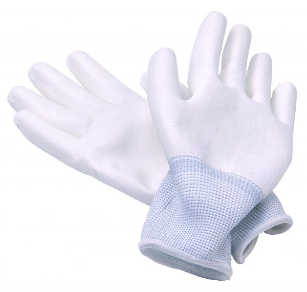 Estos guantes están recubiertos de poliuretano en color blanco en una sola pieza.